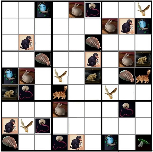 Solve this puzzle and send the solution as an attachment to [email protected] before 17th of August. The Subject of the email is - Menagerie Sudoku - (your HOL name). Be sure to include within the body of the email your HOL name and House. You will earn 5 House points with a correct solution.